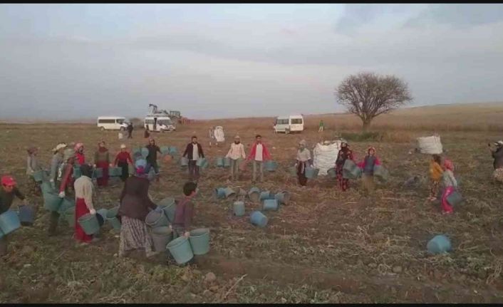Afyonkarahisar’a patates hasadı için gelen işçiler hasat döneminin sona ermesini kovaları havaya atarak kutladı.