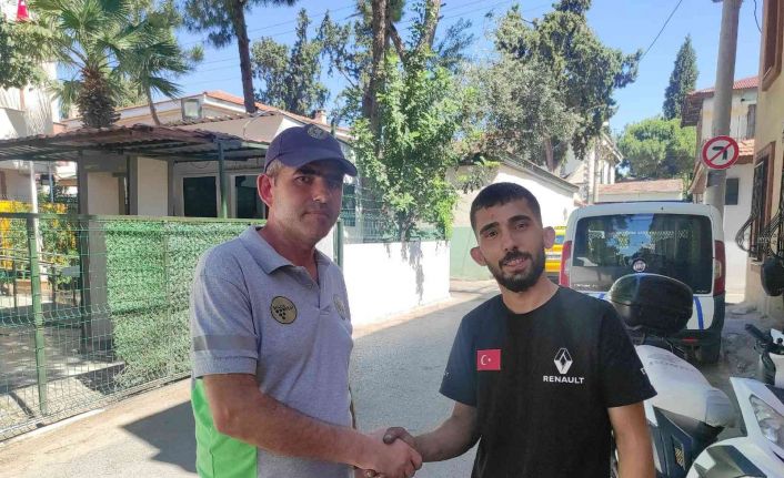 Menderes Mahallesi’ndeki Mustafa Eren Parkı’nda rutin çalışma yapan Buca Belediyesi Park ve Bahçeler Müdürlüğü işçisi Serkan Akdoğan, yerde bulduğu para dolu cüzdanı yetkili mercilere ileterek sahibine ulaştırdı. Bornova’da 2. Sanayi Sitesinde oto elektrikçilik işiyle uğraşan Veysel Şeker, içinde 2 bin 200 TL nakit paranın yanı sıra banka kartlarının bulunduğu cüzdanı teslim alırken teşekkür etti.