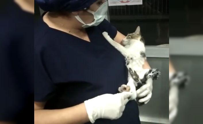 Kahramanmaraş’ta ayağı kırık halde hastaneye gelen bir kedinin yardımına sağlık görevlileri yetişti.