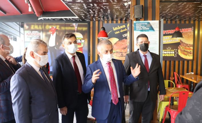 Antalya Valisi Ersin Yazıcı’ya gerçekleştirdiği denetimde, Kepez Kaymakamı Nusret Şahin, İl Jandarma Komutanı Tuğgeneral Mustafa Başoğlu, İl Emniyet Müdürü Mehmet Murat Ulucan, İl Sağlık Müdürü Ünal Hülür ve Antalya Esnaf ve Sanatkarlar Odaları Birliği Başkanı Adlıhan Dere eşlik etti.