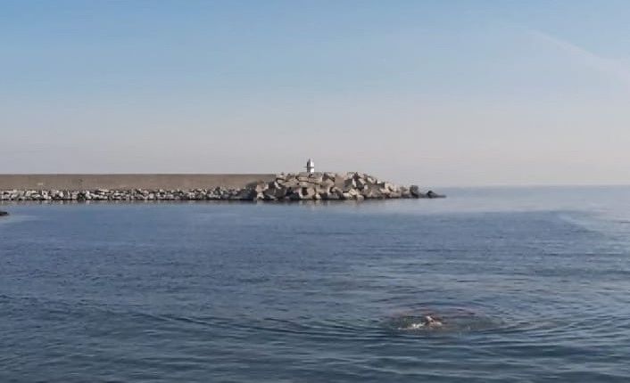 Kozlu ilçesinde esnaflık yapan Atanur Öner, soğuk havaya aldırış etmeden denize girdi.
