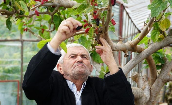 Kış ortasında dalından kırmızı dut yediler