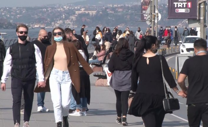 İstanbul’da havanın güneşli olması nedeniyle yoğun bir kalabalık pandemi kurallarını yok sayarak Salacak Sahili’nde toplandı. Bazı kişiler sosyal mesafe kuralına uymayarak banklarda otururken, bazılarının da maskesiz olduğu görüldü. Yoğunluk havadan görüntülendi.