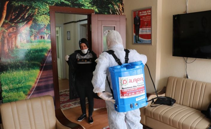 Malatya’da ev ve iş yerlerini dezenfekte eden ekiplerin sokaktaki vatandaşları dezenfekte görüntülerini sosyal medyadan izleyen 35 yaşındaki Yasemin Yağcı, görüntülerdeki yer alan temizlik şirketini bularak, ofisine gitti. Kıyafetleri ile birlikte dezenfekte olan kadın, talebi üzerine özel kıyafetleri ve cihazları donanan ekipler tarafından dezenfekte edildi.