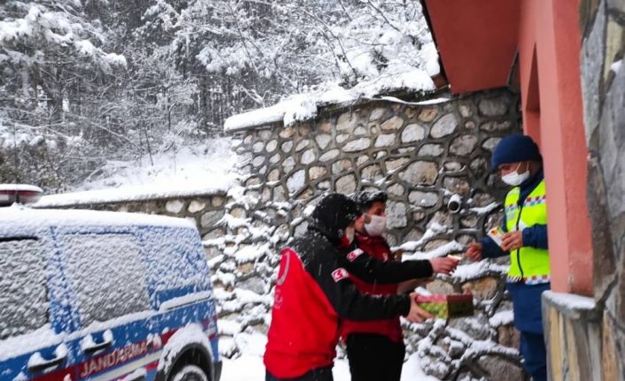 Türk Kızılay Bursa Şubesi, günlük hayatın kardan etkilenmemesi için gece gündüz çalışan ekiplerin de yüzünü güldürdü.