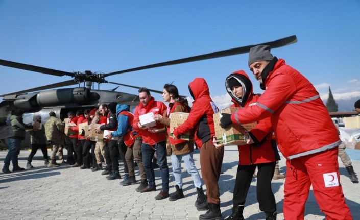 Merkez üssü Kahramanmaraş olan 7.7 ve 7.6 büyüklüğündeki iki depremin ardından Kızılay, profesyonel ekiplerini ve gönüllülerini deprem bölgelerindeki çalışmalarını sürdürüyor. Kızılay ekipleri temel beslenme ihtiyacı bulunduğu bilgisi alınan yaklaşık 900 köye kara yolu ve TSK’ya ait helikopterlerle yardım ulaştırdı.