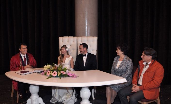 Başkan Dündar, evlilik cüzdanını çifte takdim etmesi için aile büyüğü olarak Selim Soydan’a verdi. Soydan da aile cüzdanını geline vererek mutluluklar diledi.
