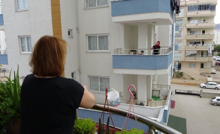 Kozan’da yaşanan ilginç komşuluk ilişkisini İhlas Haber Ajansı muhabiri görüntüledi. Ayrı apartmanlarda oturan ve balkondan balkona ip gererek komşuluk ilişkilerini koparmayan kadınlar tüm Türkiye’yi evde kal çağrısına uymaya davet etti.