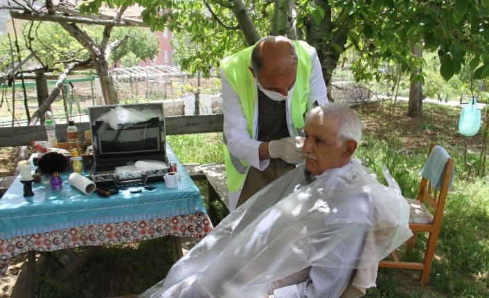 Konya’nın Derebucak ilçesinde Vefa Sosyal Destek Grubu, korona virüs salgınına karşı sokağa çıkmaları kısıtlanan 65 yaş ve üstü ile kronik hastalığı olan vatandaşlara bayram tıraşı hizmeti sunuyor.