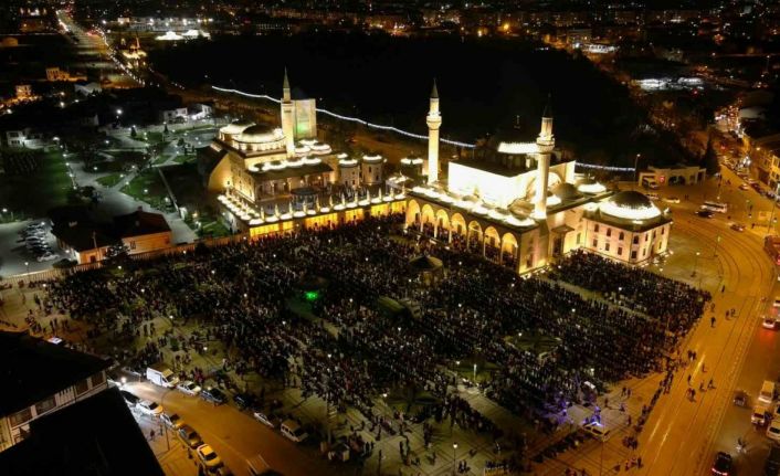 Konya’da Mevlana Meydanı’nı dolduran binlerce kişi Kadir Gecesi’ni idrak etti.