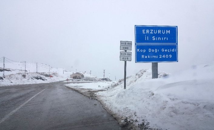 Bayburt-Erzurum karayolu üzerindeki 2409 rakımda bulunan Kop Dağı Geçidinde kar ve tipi etkili oldu.