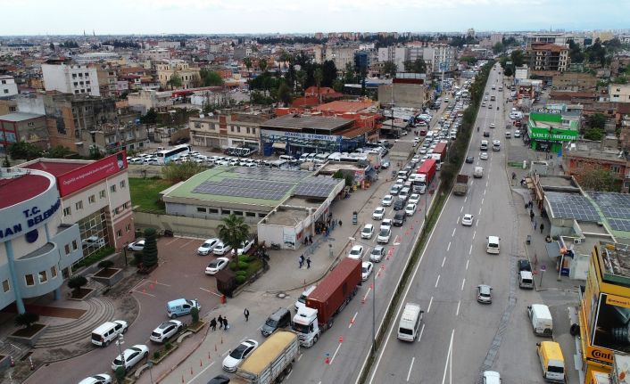Adana’da köprü çalışması nedeniyle trafiğe kapanan yollardan dolayı D-400 karayolunda yaklaşık 9 kilometrelik araç trafiği oluştu. Trafik drone ile havadan görüntülendi.