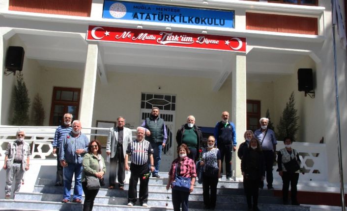 Muğla’nın Menteşe ilçesinde tarihi Atatürk İlkokulundan 1965 yılında mezun olan öğrenciler, Covid-19 tedbirleri kapsamında 65 yaş üstüne getirilen 4 saatlik sokağa çıkma izninde 55 yıl sonra mezun oldukları okulda bir araya geldiler.