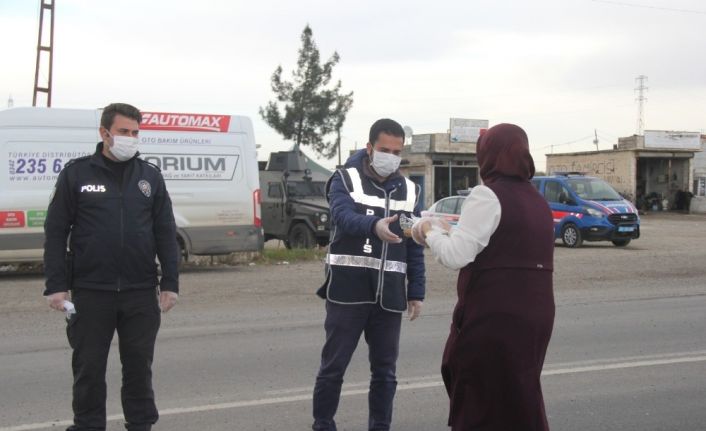 Şanlıurfa’nın Birecik ilçesinde şehit asker ve polislerin yakını olan kadınlar, korona virüsü nedeniyle uygulama noktasında görev yapan asker ve polislere tatlı ikram etti.