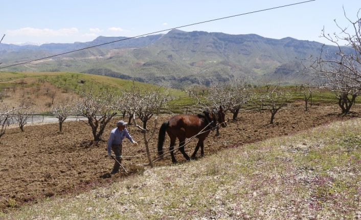 Siirt’te fıstık üreticileri, il piyasasına yıllık 350-400 milyon lira gelir getiren fıstık bahçelerinde korona virüs yüzünden çalıştıracak işçi bulamayınca tarlalarını atlarla sürdü.