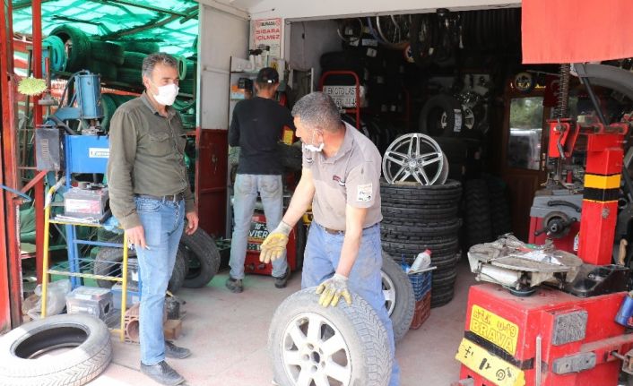 Otomobilindeki kış lastiklerini çıkarmak için gelen müşteri Ali Şahin de, "Yeşilyurt ilçesine bağlı Dilek Mahallesi’nde oto lastik ustası Bekir Ekici ustanın yanına geliyoruz. Kış lastiklerimiz değiştiriyoruz. Yaz uygulamasına geçiyoruz. Korona virüsten korunmak için bu yıl kış lastiğini değiştirmeyi geciktirdim” diye konuştu.