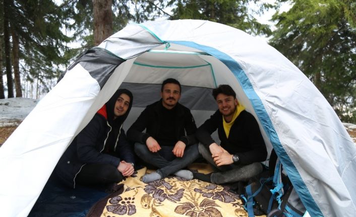 Korona virüsüne karşı alınan tedbirler kapsamında üniversitelerin tatil edilmesinin ardından, birçok öğrenci memleketine gitti. Artvin Çoruh Üniversitesi öğrencilerinden, Mücahit Karalı, Furkan Çapaloğlu ve Baştuhan Zelbilci ise büyük şehirlerde Korona virüsünün yayılma olasılığı fazla olduğu gerekçesiyle Artvin’de kalmaya devam ettiler. Uyarılara uyan ve evde kalan üç arkadaş evde oturmaktan sıkılınca çareyi Kafkasör Yaylası’nda kamp kurmakta buldu. Doğayı seven gençler kış şartlarına aldırış etmeden sırt çantalarını alarak bin 200 rakımlı Kafkasör Yaylası’nın yolunu tuttular. Araç kullanmadan yürüyerek yaylaya varan gençler, karla kaplı yaylada çadırlarını açarak geceyi burada geçirdiler. Çam ağaçlarının arasında kurdukları çadırda Korona virüsünden kendilerini korumaya çalışan gençler, süreç normalleşene kadar şehre inmeyi düşünmediklerini söylediler.