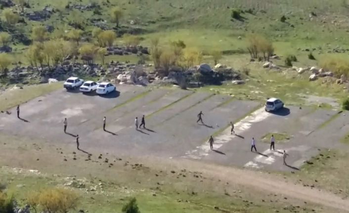 Adıyaman’da yasak dinlemeyen bir grup, daha önce sondaj sahası olarak kullanılan yerde futbol maçı yaptı.