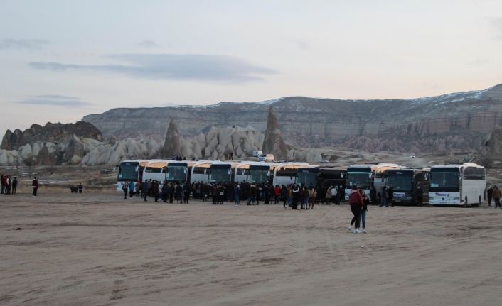 Kapadokya bölgesinde sabahın erken saatlerinde balon turlarına izlemek üzere bölgeye gelen 8 tur otobüsünde bulunan öğrenci grupları balon turlarının iptal edilmesinin ardından koronavirüs kurallarına hiçe sayarak halay çekip oyun havasında oyunlar oynaması kameralara yansıdı. Bölgeyi ziyarete gelen öğrenci gruplarının maske ve sosyal mesafe kurallarını hiçe saydıkları dikkatlerden kaçmazken tur düzenleyen firma ise ortaya çıkan manzaranın kameralara yansıması sonrasında ise müzik yayınına ara verdiği görüldü.