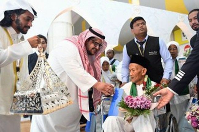 Suudi Arabistan Kralı Selman bin Abdülaziz’in verdiği talimat üzerine hac ibadetini eda etmek üzere davet edilen 130 yaşındaki Endonezyalı Uhi Aydarus Samri Mekke’ye ulaştı.