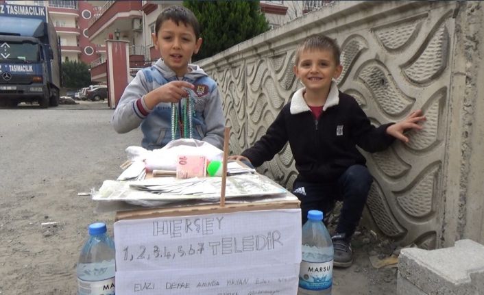 Hatay’ın Dörtyol ilçesinde ilkokul öğrencisi Berk Meşeci, depremzede çocuklar için açtığı tezgahında, kendisine ait oyuncakları, kitapları, tespih ve ödev notlarını sergileyip satıyor.