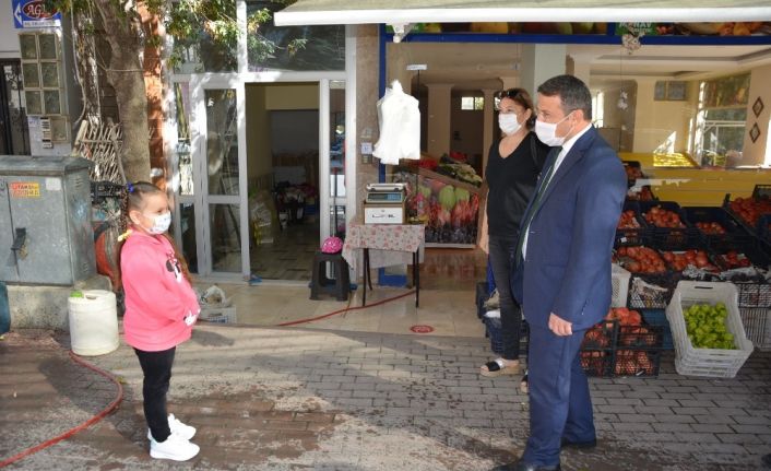 Antalya’nın Korkuteli ilçesinde korona virüs tedbirleri kapsamında denetim yapıldı. Korkuteli Kaymakamı Ömer Çimşit’in de katıldığı denetimlerde esnaf sosyal mesafe, maske ve hijyen kurallarına uyulması konusunda uyarılırken, minik bir kız çocuğu Kaymakam Çimşit’e "Bayrak" şiirini okudu.