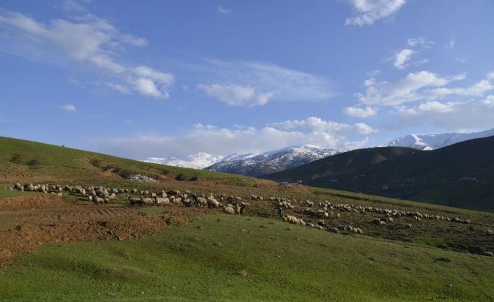 Muş’ta besiciler çetin kış mevsiminin ardından küçükbaş hayvanlarını Muş Ovası ve dağlarda otlatmaya başladı.