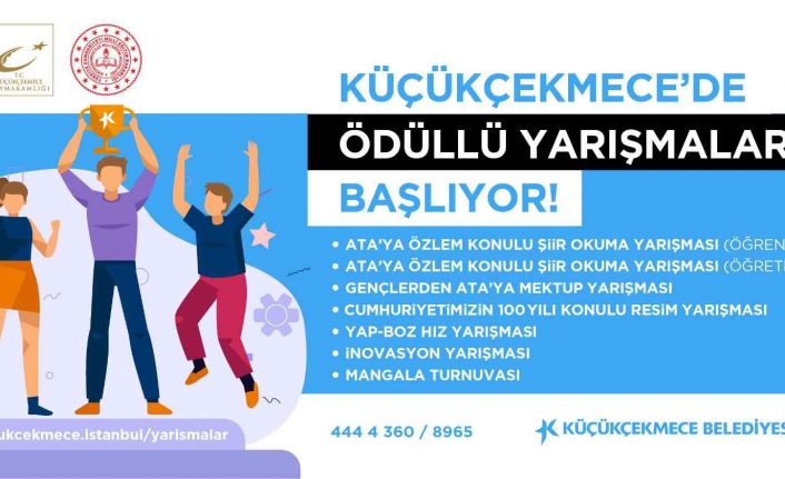 Ödüllü yarışmalar, Cumhuriyetin 100. yılı dolayısıyla "resim" yarışması, ‘’Ata’ya özlem’’ konulu şiir okuma yarışması, ilçedeki "inovasyon" yarışması, hız ve doğru karar verme becerisinin ölçülmesi için ‘’yap-boz" yarışması ve ‘’mangala’’ turnuvası kategorilerinde düzenlenecek. Yarışmaya Küçükçekmece’deki resmi, özel her kademedeki okullarda görev yapan tüm öğretmenler ve ilkokul, ortaokul, lise ve üniversite öğrencileri katılabilecek. Yarışmalar sonunda dereceye girenler en az bin TL, en çok 3 bin TL ile ödüllendirilecek. Yarışmaların jürisi ise öğretmenler, akademisyenler, sanatçılar ve hakemlerden oluşan alanında uzman bir ekip olacak.