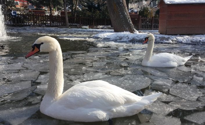 Çankaya Belediyesi veterinerleri tarafından düzenli olarak kontrolleri yapılan ve Belediye ekiplerince özenle beslenen kuğular, kazlar ve ördeklerin keyifleri yerinde. Bir kısmı buz tutan havuzlarında vakit geçiren su kuşlarına vatandaşların ilgisi de yoğun oluyor.