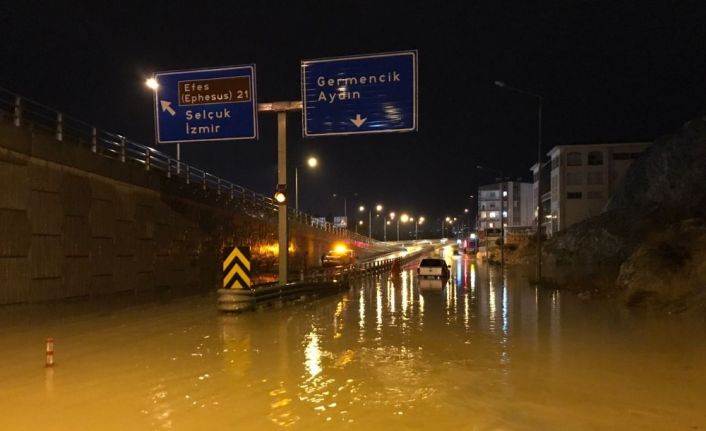 AYDIN (İHA) – Aydın’ın Kuşadası ilçesinde etkili olan sağanak yağış nedeniyle araçlar yolda kaldı, çevre yolunun bir bölümü trafiğe kapandı.