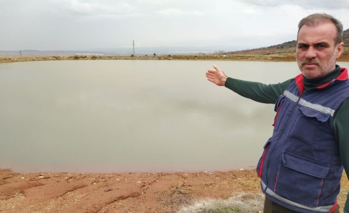 Göletteki su seviyesi, İHA tarafından havadan da görüntülendi.
