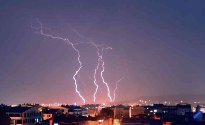 Kütahya’da akşam saatlerinde aniden bastıran yağmurla birlikte çakan şimşekler gökyüzünü aydınlattı, şimşekler görsel şölen oluşturdu.