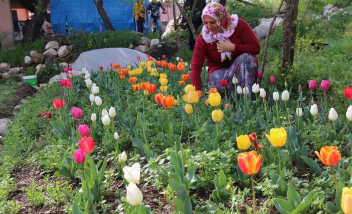 Hatay’ın Yayladağı ilçesinde "Çiçekler Doğanın Gülümseyişidir" adlı proje kapsamında eğitim gören kadın çiftçilere dağıtılan lale soğanları, toprakla buluştuktan sonra ilk çiçeklerini açtı.