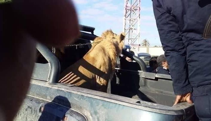 Libya’nın Bingazi şehrinde sokakta dolaşan aslan paniğe neden oldu.