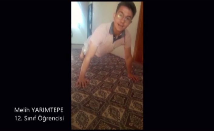 Okulun İngilizce Öğretmeni Sevinç Ay Çalıkuşu çiçek sularken, okul öğrencisi Hasan Tintaş kitap okurken ve bir başka öğrenci Melih Yarımtepe ise şınav çekerken "Evinde Kal Türkiye" dedi.