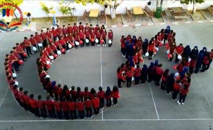 Liselilerin yaptığı koreografi sırasında, arka fonda ise ‘Gündoğdu Marşı’ çalındı.