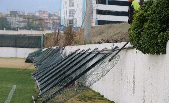 Denizli’de dün öğle saatlerinden itibaren saatteki hızı yaklaşık 100 km’yi bulan lodos kentte hayatı felç ederken, şiddetli rüzgardan Denizlispor Haluk Ulusoy tesisleri de nasibini aldı. Rüzgar antrenman sahasının tel örgüleri devirdi.