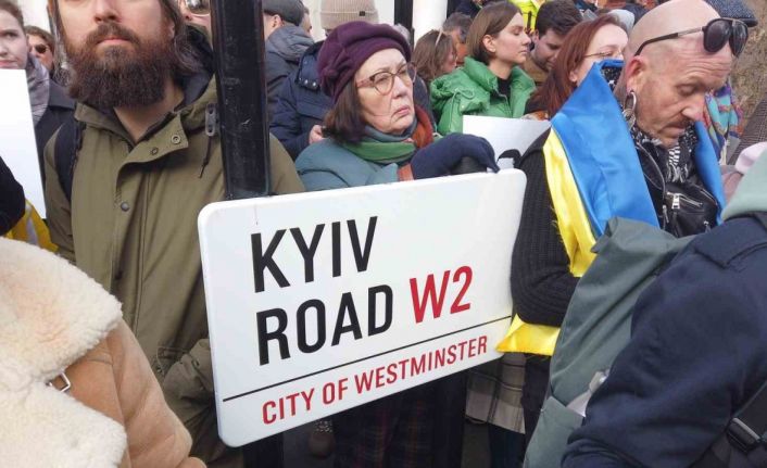 Rusya-Ukrayna savaşının 1. yıldönümünde İngiltere’nin başkenti Londra’da Westminster’daki yolun adı, "Kiev Road" olarak değiştirildi. Yolun tabelasının belediye tarafından bütün izinleri alınarak değiştirildiği bildirildi. Geçtiğimiz günlerde Eşekler grubu tarafından Rusya Büyükelçiliğinin sokağının Ukrayna bayrağının renklerine boyanmasının ardından Westmeaths belediye Meclis lideri ve işçi meclis üyesi olan Adam Hug tarafından caddenin yeniden adlandırılması için teklif sunduğu açıklandı. Adam Hug yaptığı açıklamada, "Westminster, savaş nedeniyle yerinden edilmiş Ukraynalıların evi ve bölge sakinlerimiz Putin’in savaş makinesinden kaçanlara kalplerini ve kapılarını açtı. Ukrayna halkına mücadelelerinin şehrimizde görünür bir yeri olduğunu göstermek amacıyla böyle bir girişimde bulunduk" açıklamasını yaptı.