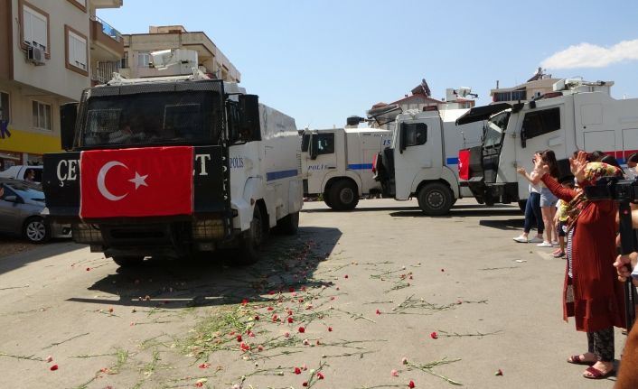 Manavgat yangınında görev yapan TOMA’lar çiçekler ve alkışlarla uğurlandı