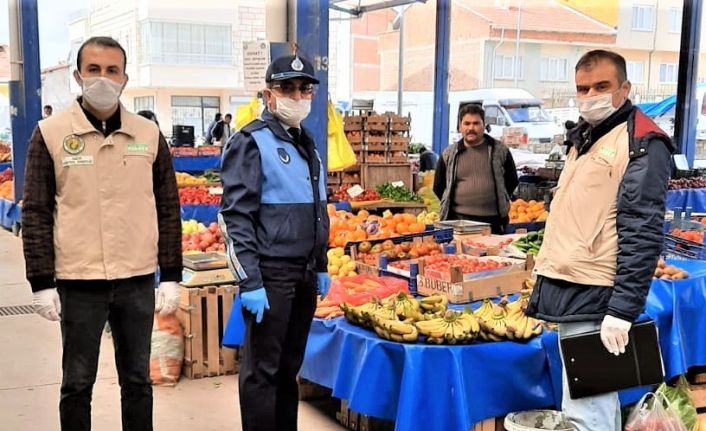 Pazaryeri denetimlerinde halk sağlığının korunması açısından, açık gıda, sebze ve meyve satılan tezgahlar kontrol edilerek tezgahlar arasında güvenli mesafe oluşturulması, maske ve eldiven kullanılması ve kurallara uyulması konusunda ikazlarda bulunuldu. Ayrıca alışveriş yapan vatandaşlar korona virüs ile ilgili bilgilendirilirken, tezgahlarda satılan ürünlere dokunulmaması konusunda uyarıldı.