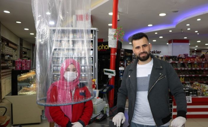 Niğde’de bir market yönetimi, yeni tip korona virüse (Kovid-19) önlem için kasiyerlerinin etrafını naylonla korumaya aldı.