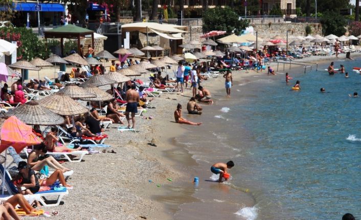 Turizmin gözbebeği Bodrum’da denize giren vatandaşların duyarsızlığı bu kadarına da pes dedirtti. Maske, mesafe kurallarına uymadan denize girip sahilde güneşlenen vatandaşlar korona virüs (Covid-19) salgınını hiç saydı.