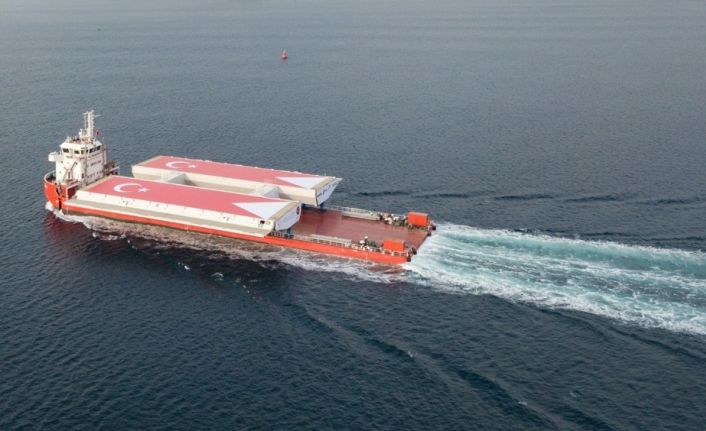Fabrikada tamamlanan 3 adet Mega Bloğun, Gölcük Çimtaş Tesislerinden Gelibolu Tabliye Depo Sahasına getirildiğinin de vurgulandığı açıklamada, “Tabliyelerin taşınması sırasında Türk Bayrağı ile kaplanan bloklar görsel bir şölen oluşturdu. Kedi Yolu Montajının tamamlanması ile mega blok olma özelliğine sahip, 48 metre uzunluğunda, 45 metre genişliğinde ve 700 ton ağırlığındaki tabliyenin gerekli hazırlıkların ardından montajına başlanılacak” ifadeleri kullanıldı.