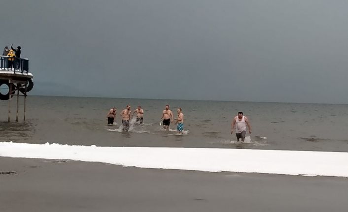 Orhangazi’de ‘doğa gezi grubu’ olarak bir arayan gelen vatandaşlar, buz gibi havada İznik Gölü’ne girdi. Organizasyonda, soğuk kış aylarında Türkiye’nin dört bir yanında zor şartlarda görev yapan güvenlik güçlerine destek verilirken, İznik Gölü’ndeki çekilmeye de dikkat çekildi.