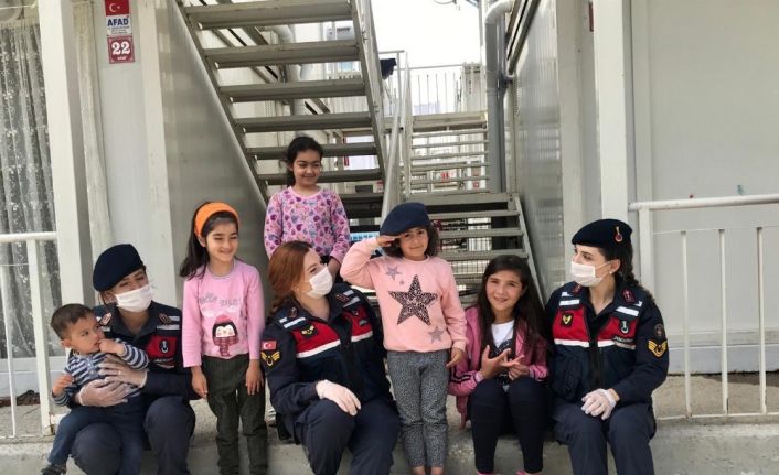 Elazığ’da jandarma ekipleri konteyner kentlerde kalan ailelere bir kamyon içme suyu desteğinde bulundu, karşılaştıkları çocuklara ise yakın ilgi gösterip oyunlarına eşlik etti.