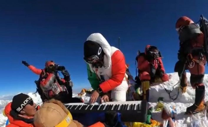 Everest Dağı’na tırmanan 19 yaşındaki Meksikalı genç dağcı zirvede org çaldı.