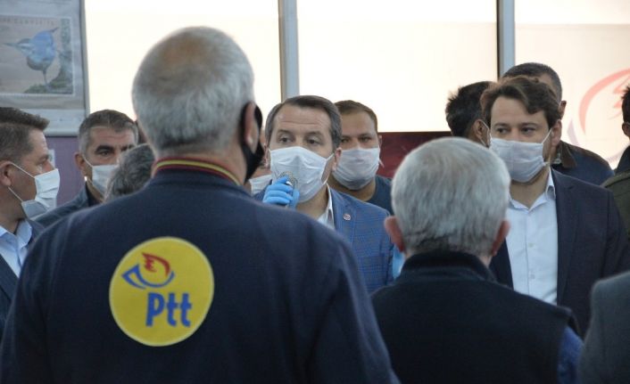 Memur-Sen Genel Başkanı Ali Yalçın, korona virüsle mücadele sürecinde işlerini hassasiyetle sürdüren PTT çalışanlarını ziyaret etti.