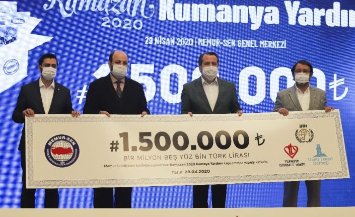 Memur-Sen, her Ramazan ayında olduğu gibi bu Ramazan’da da kardeşlik, birlik ve yardımlaşma bilincini kuşanarak hayır kurumları aracılığı ile ihtiyaç sahibi ailelere ulaştırılmak üzere toplamda 1 milyon 500 bin TL değerinde kumanya yardımında bulundu.