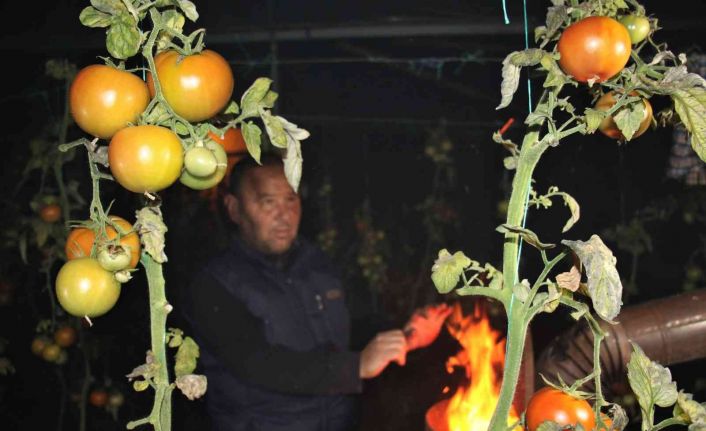 Meteoroloji’nin uyarısını anımsatan üretici İsmet Ateş," Bizde gündüzden sobalarımızı, yakacaklarımızı hazırladık. Hava sıcaklığının akşam saatlerinde sıfıra düşmesi neticesinde sobalarımızı yaktık. Derecelerimizi yükselttik, sabaha kadar sobalarımızı böyle yakacağız. Ürünlerimizi zirai don vurmaması için böyle nöbet tutacağız. Buranın rakımı 600, seramızda domates var. Hasadı yarı civarında yaptık, zirai don uyarısı nedeniyle sabaha kadar sobalar yanacak. Nöbeti tutmazsak ürünlerimizi don vurur, bu zamana kadar çektiğimiz emekler boşa gider, bizde aç kalırız"dedi.
