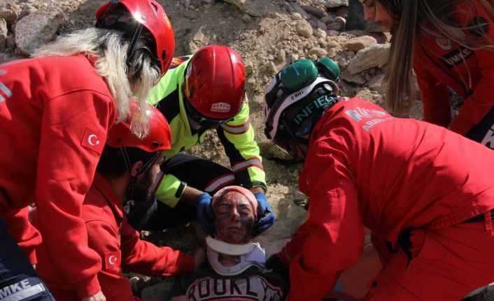 MERSİN (İHA) – Mersin’de gerçekleştirilen deprem tatbikatı gerçeğini aratmadı. Senaryoya göre, Akdeniz’de Mersin açıklarında meydana gelen 5,9 büyüklüğündeki depremde, ekiplerin enkaz altında kalan yaralılara müdahaleleri nefes kesti.